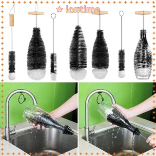 LONTIME Bàn Chải Vệ Sinh Bình Thủy Tinh / Chai Nước Với Tay Cầm Bằng Gỗ Sồi Tiện Dụng Cho Nhà Bếp