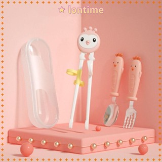 LONTIME Bộ Đũa Tập Ăn Bằng Thép Không Gỉ Màu Hồng / Vàng / Bạc Cho Trẻ Em