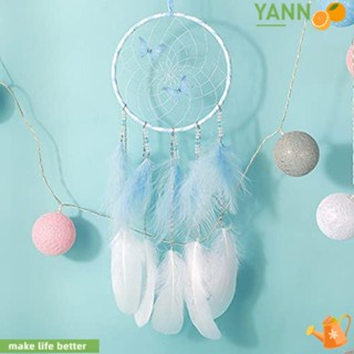 YANN1 Lưới Bắt Giấc Mơ Có Đèn LED Gắn Lông Vũ Trang Trí