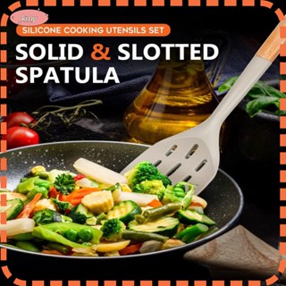 KRNY Set 2 Xẻng Chiên Cá / Nấu Ăn Bằng silicone Cán Gỗ Chống Dính