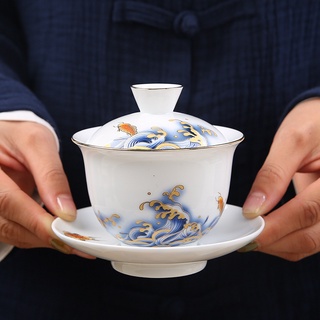 Chén Sứ Cảnh Đức Vẽ Tay Thủ Công Ngũ Hổ Lâm Môn Lòng Chén Dát Vàng 24K (Sản phẩm cao cấp 160 ml)