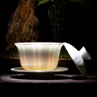 Chén Khải tiềm pha trà bằng sứ trắng Bạch Định thấu quang 140 ml