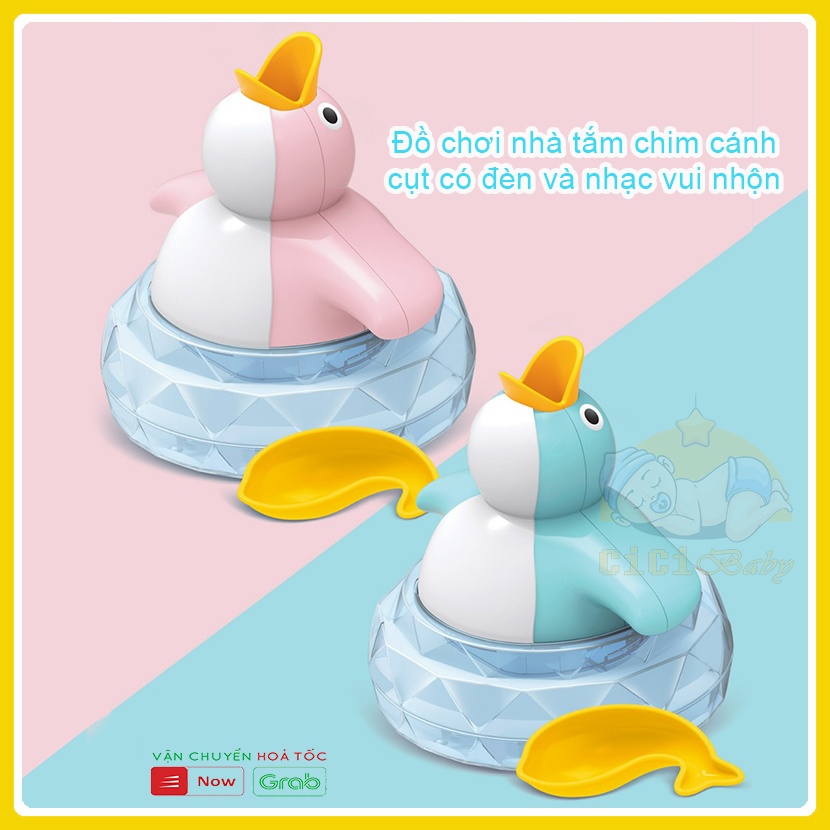 Đồ chơi nhà tắm cho bé thương hiệu Uulzzor hình chim cánh cụt có đèn và nhạc phát sáng vui nhộn