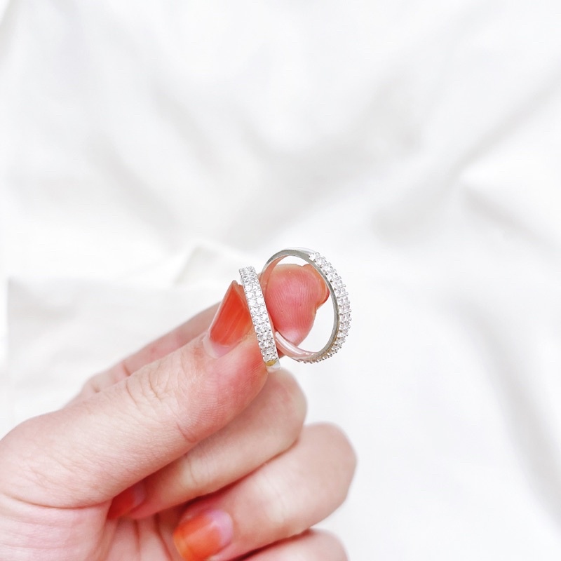 Giới thiệu Nhẫn bạc nữ DaLiA Jewelry nhẫn bạc đính đá 2 hàng đơn giản dễ phối đồ chuẩn bạc thật 925