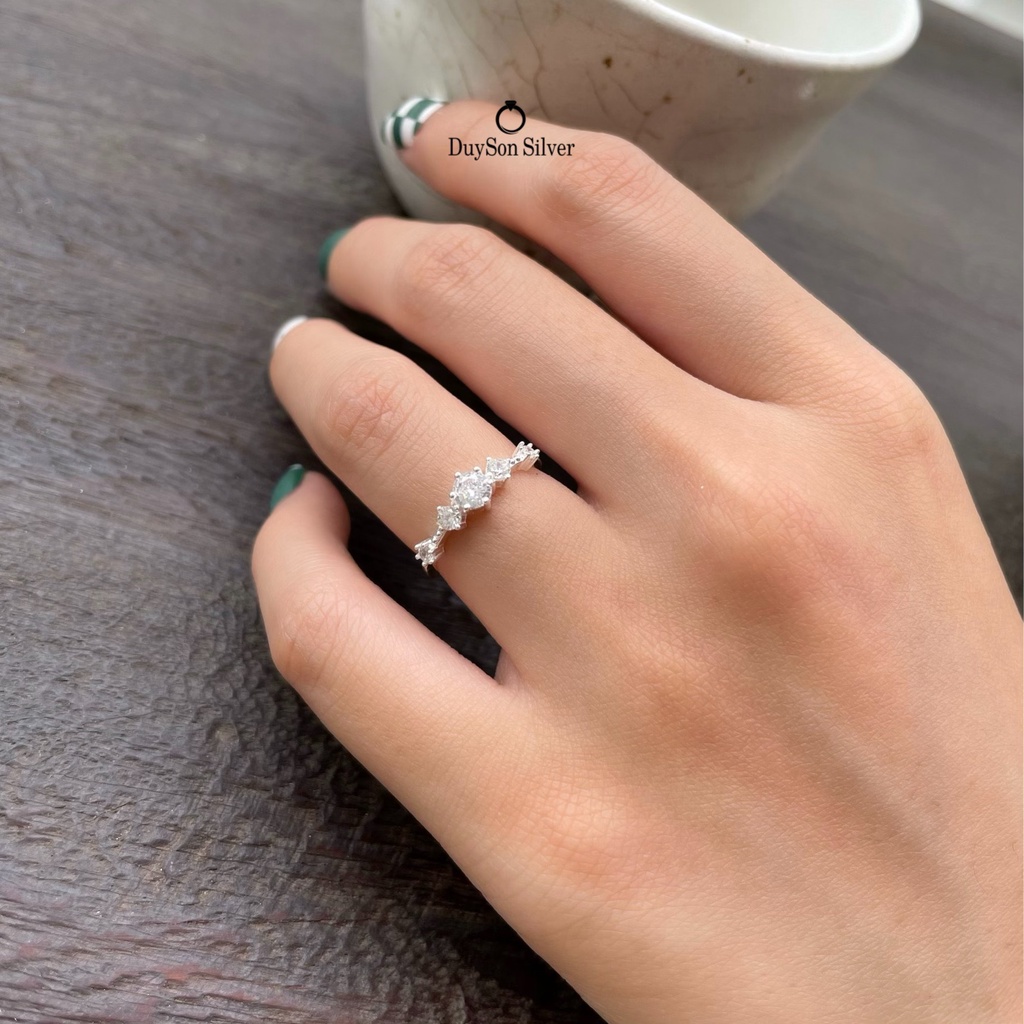 Giới thiệu Nhẫn bạc nữ đính đá đẹp lấp lánh, nhẫn nữ bạc 925 ổ cao DUYSON SILVER [NKX1]