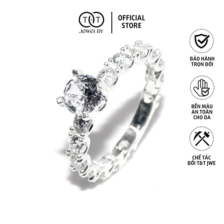 - Nhẫn bạc T&T JEWELRY được thiết kế thanh lịch, trẻ trung theo xu hướng mới nhất của ngành phụ kiện trang sức
