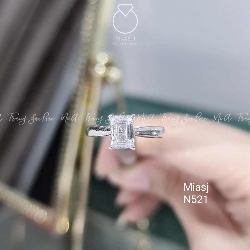 Giới thiệu Nhẫn bạc Ý S925 nữ MiASJ N521 4 chấu kết đá vuông Baguet cao cấp sang trọng | MiASJ