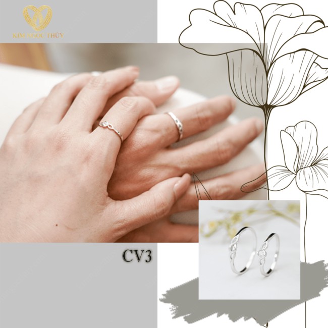 Giới thiệu Nhẫn Cặp 10K Kim Ngọc Thủy Màu Trắng CV3 Phong Cách Thời Trang