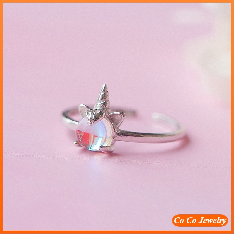 Giới thiệu Nhẫn đá pha lê hình kỳ lân xinh xắn cho nữ Unicorn Ring Korea Crystal Opening Silver Rings Women Jewelry