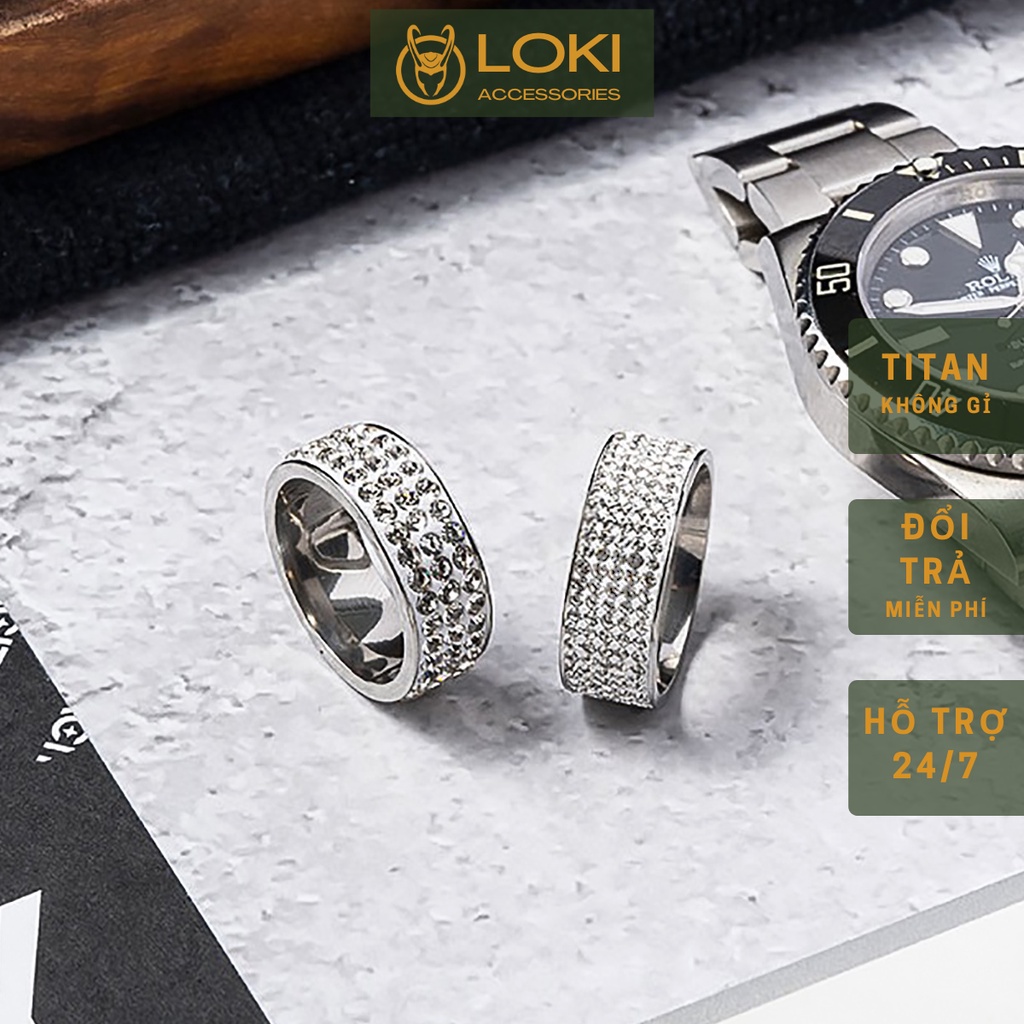 Nhẫn Unisex Nam Nữ Dring Đính Đá Màu Bạc Loki Accessories Tinh Tế Thời Trang Basic Chất Liệu Inox Không Gỉ