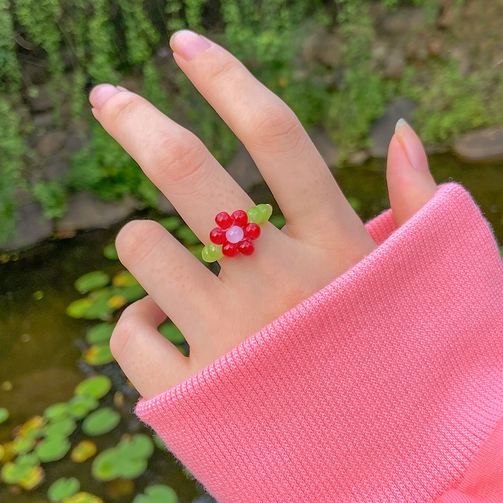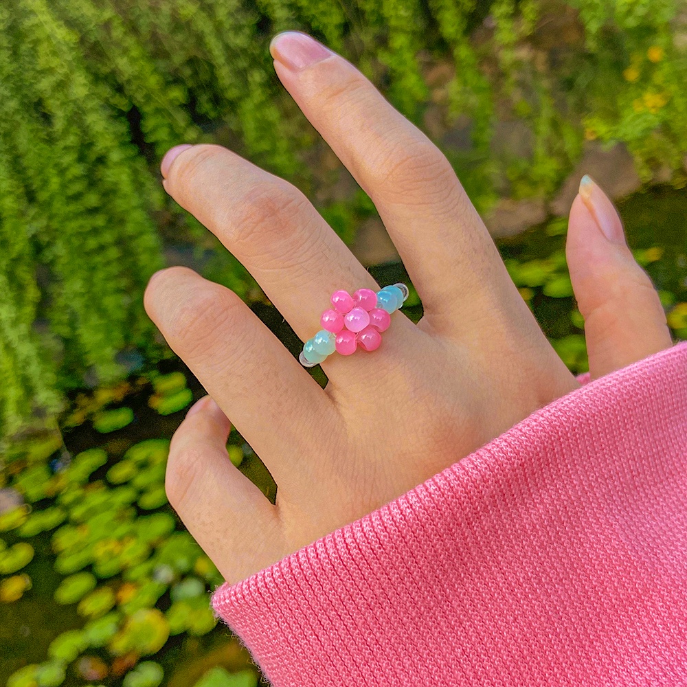 💛 Name:Fashion Colorful Beads Ring Korean Floral Pearl Rings Women Jewelry Accessories Gift