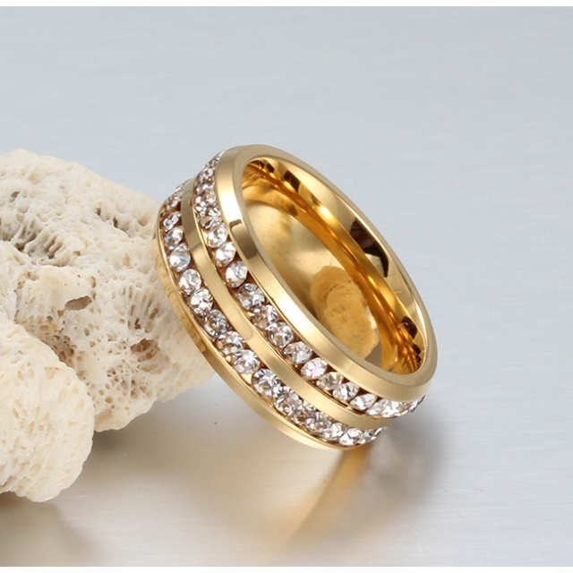 Sản phẩm mới 100% chất lượng cao, có hình thực tế, nhẫn đính kim cương màu vàng sang trọng cho nam