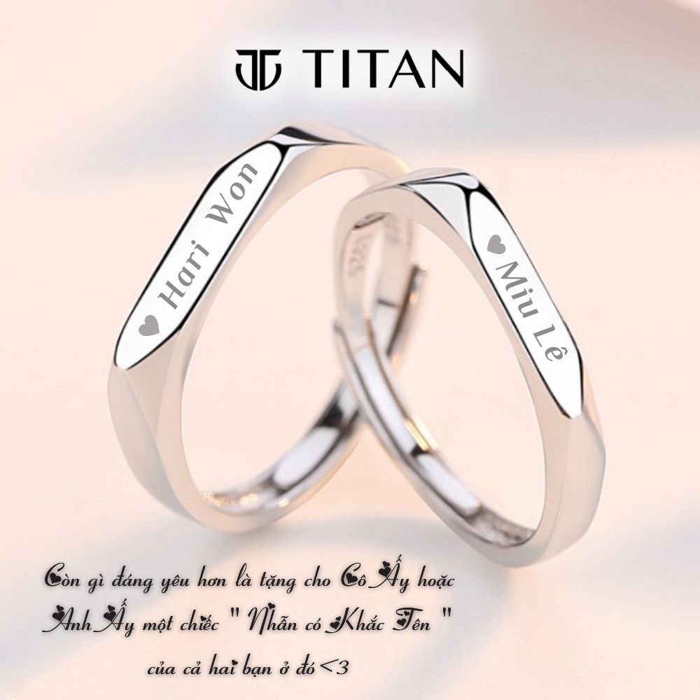 Giới thiệu Nhẫn đôi nam nữ khắc tên, nhẫn thời trang freesize thanh lịch phù hợp làm quà tặng màu bạc 925 không gỉ Titan Shop