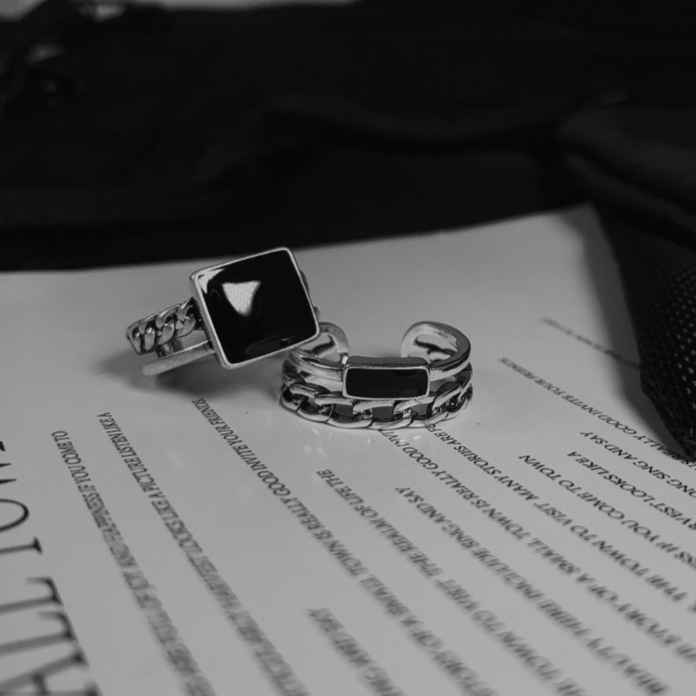 Giới thiệu Nhẫn Hai Lớp Họa Tiết Hình Học Màu Đen Cá Tính