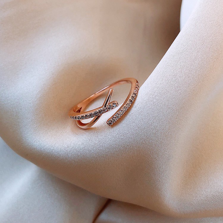 Giới thiệu Nhẫn hở đeo ngón tay đính đá màu vàng hồng sang trọng có thể điều chỉnh