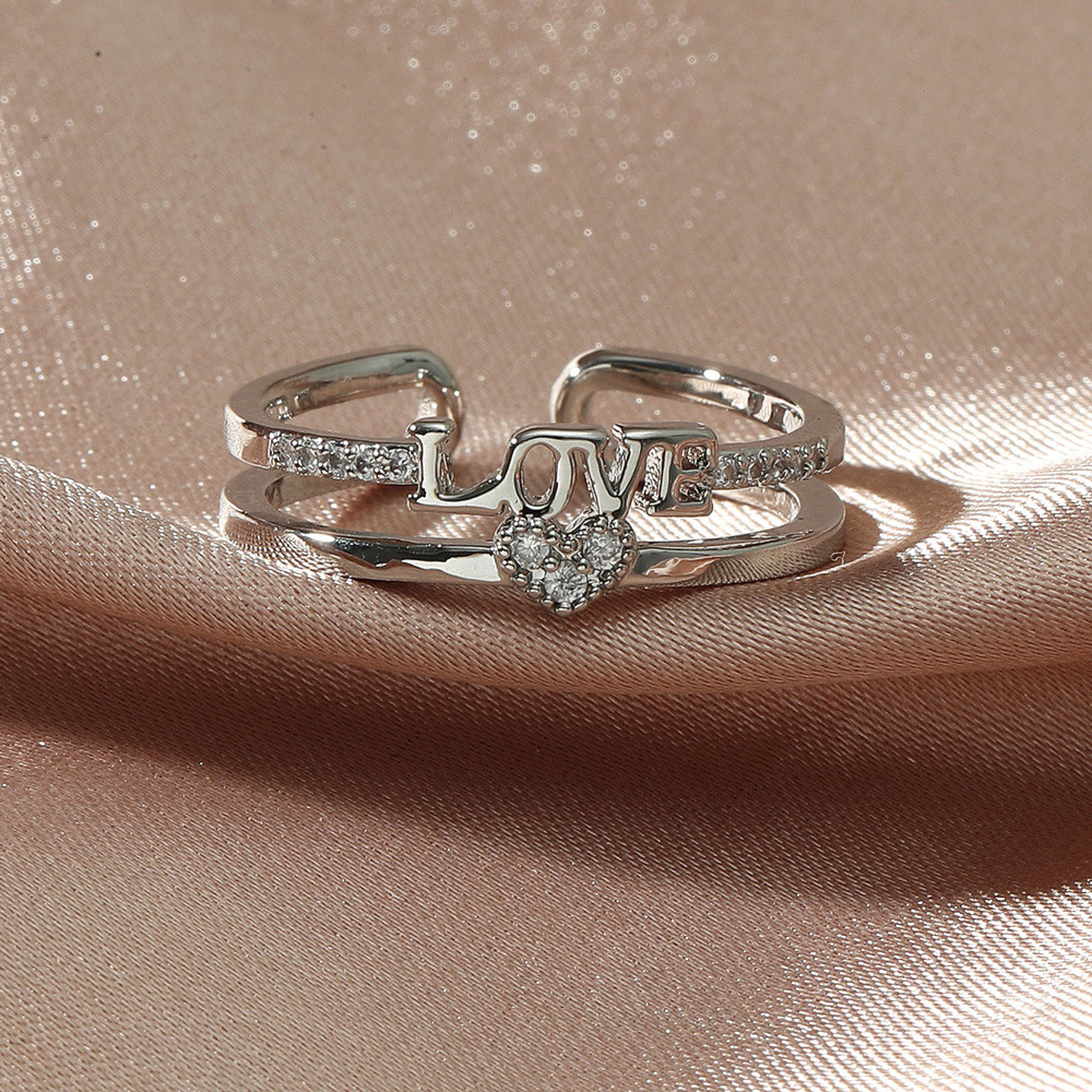 Giới thiệu Nhẫn Hở Hai Lớp Khắc Chữ Love Đính Đá Thời Trang