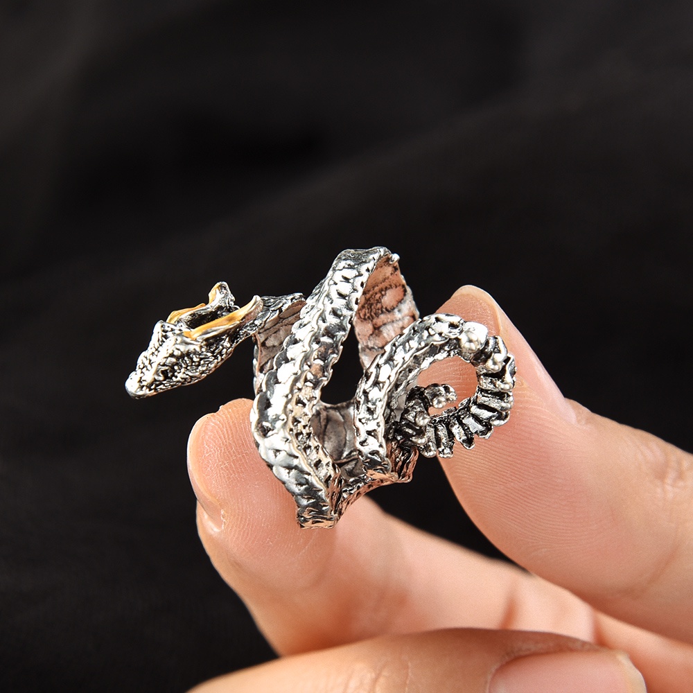 Giới thiệu Nhẫn Hở Hình Rồng Rắn Bằng Kim Loại Đơn Giản Cổ Điển Có Thể Điều Chỉnh Thời Trang Cho Nam Và Nữ