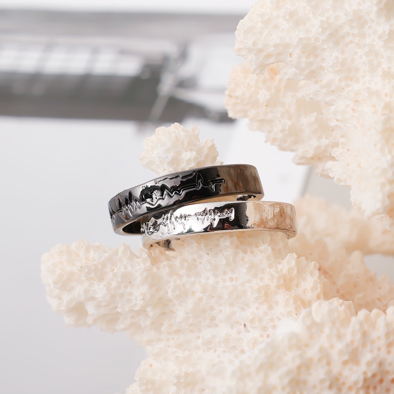 Giới thiệu Nhẫn hở họa tiết trái tim màu trắng đen thời trang cho nam nữ