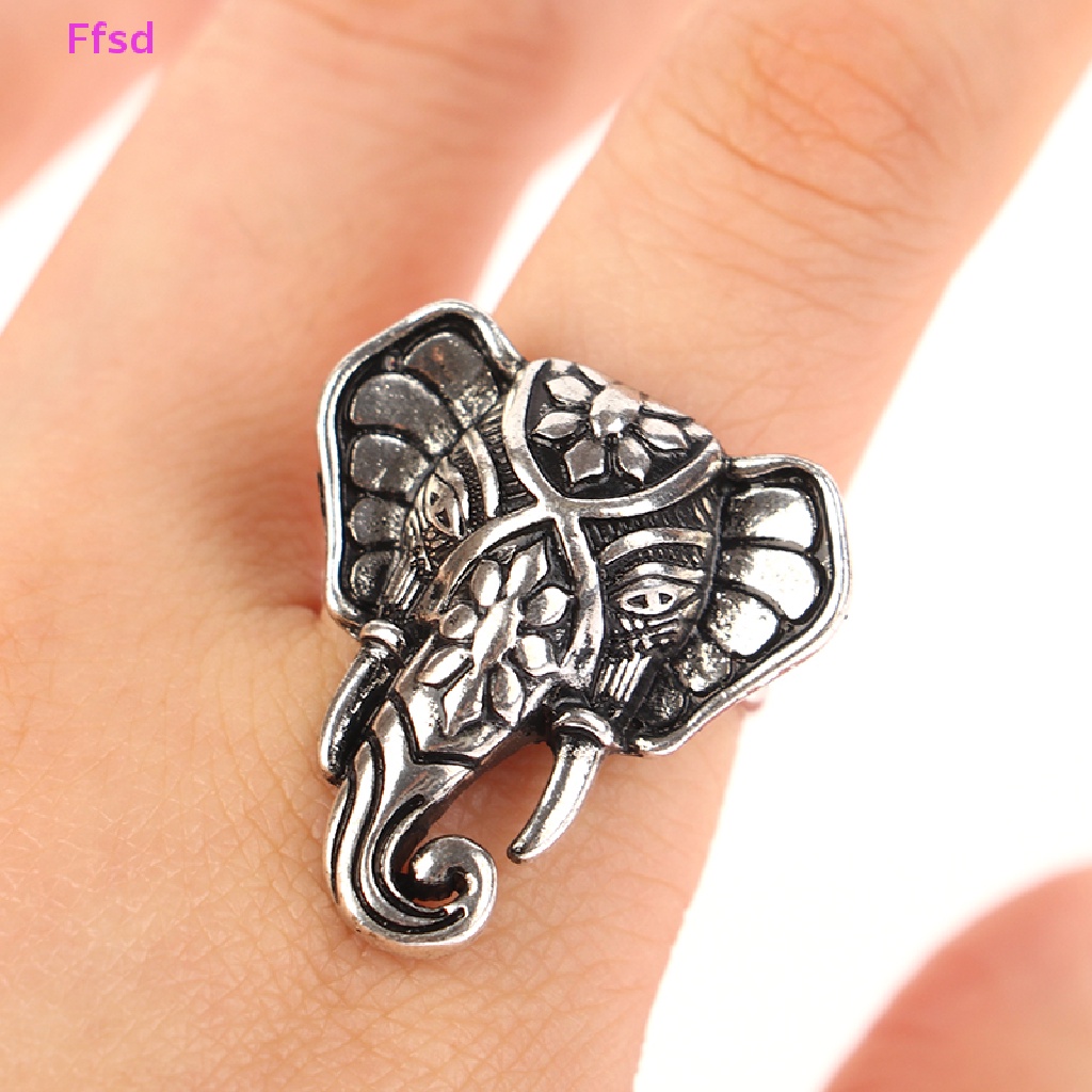 Giới thiệu Nhẫn Hở Mạ Bạc Khắc Hình Đầu Voi / Đầu Hươu Phong Cách Boho Thời Trang Cho Nữ