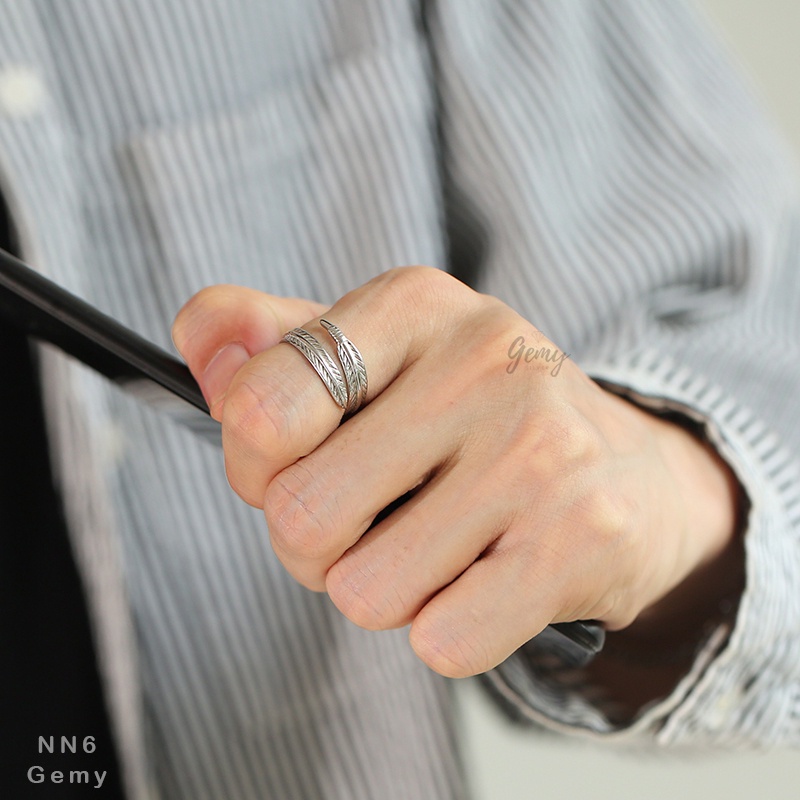 Giới thiệu Nhẫn nam bạc Feather thiết kế mặt hình lông vũ cá tính, đơn giản, nam tính, unisex | GEMY SILVER NN6