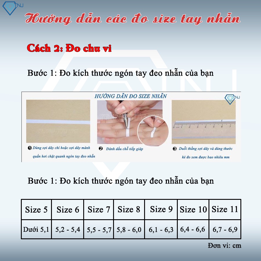 TRANG SỨC TNJ CAM KẾT - Bảo hành miễn phí trọn đời đánh bóng, làm mới hoặc gắn lại đá - Nhẫn bạc chất lượng 100% giống mô tả và hình ảnh (ảnh trang sức là hình ảnh thật do shop tự chụp). - Nhẫn được kiểm tra kĩ càng, cẩn thận trước khi đóng gói và giao đến tay khách hàng. - Shop sẵn sàng hoàn tiền nếu sản phẩm không giống ảnh (Nhận hàng có vấn đề gì bạn liên hệ qua mục Chat Shopee shop sẽ hỗ trợ nhé)