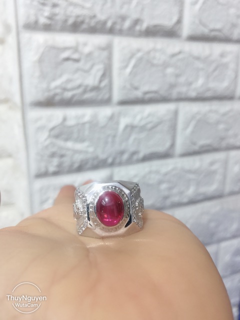 Giới thiệu Nhẫn nam đá đỏ nhân tạo đai hình rồng bạc thật xi kim