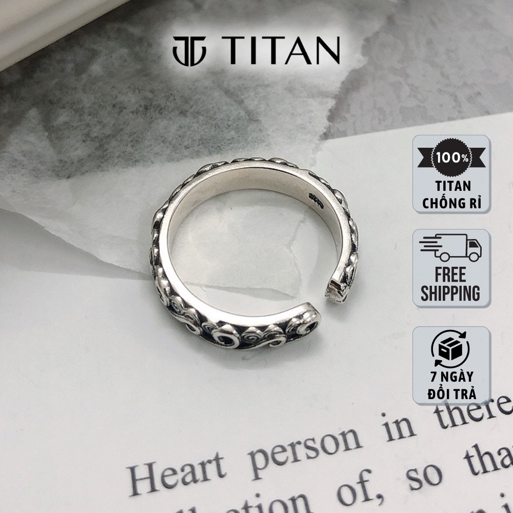 Nhẫn nam Vân Đám Mây, nhẫn titan họa tiết Cloud Ring Titan Shop màu bạc không gỉ thời trang nam nữ unisex đẹp đơn giản