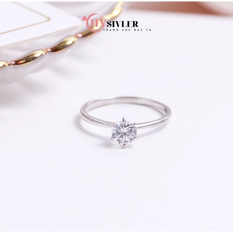 Giới thiệu Nhẫn nữ bạc ta đính đá nhỏ 3 ly nhẹ nhàng nhẫn nữ đơn giản bạc thật
