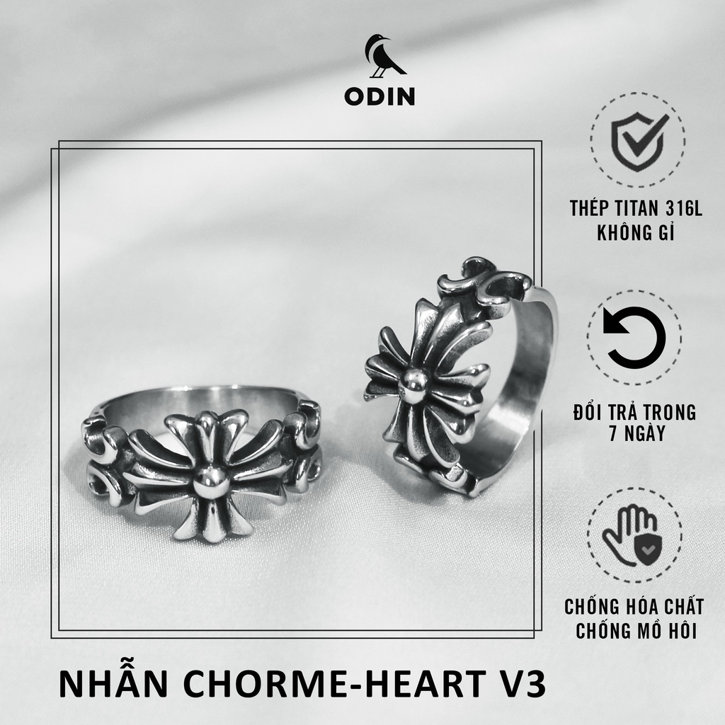 Giới thiệu Nhẫn Titan Chorme-heart bản mỏng - Dạng hình chữ Thập - 100% Titanium - Mã V3