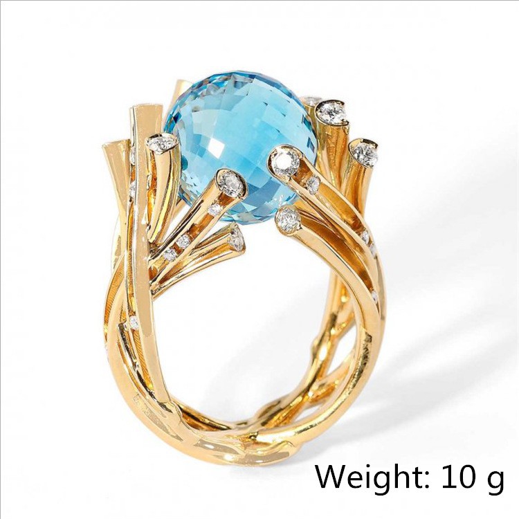 Giới thiệu Nhẫn vàng 14K nữ Nhẫn kim cương quả cầu pha lê xanh sang trọng