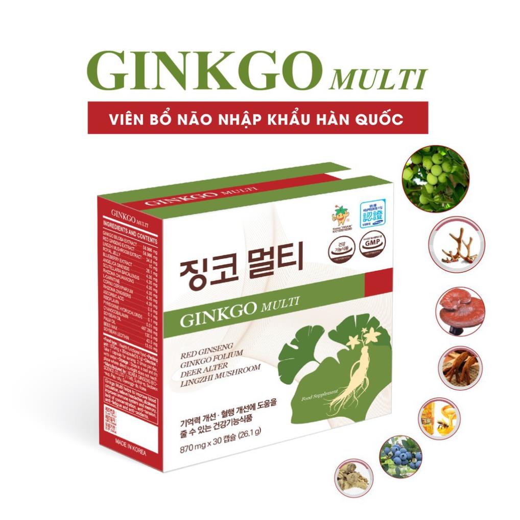 {Nhập Hàn} GINKGO MULTI – Hỗ trợ hoạt huyết dưỡng não, giảm đau đầu, mệt mỏi, tăng cường trí nhớ và tập trung (30v)
