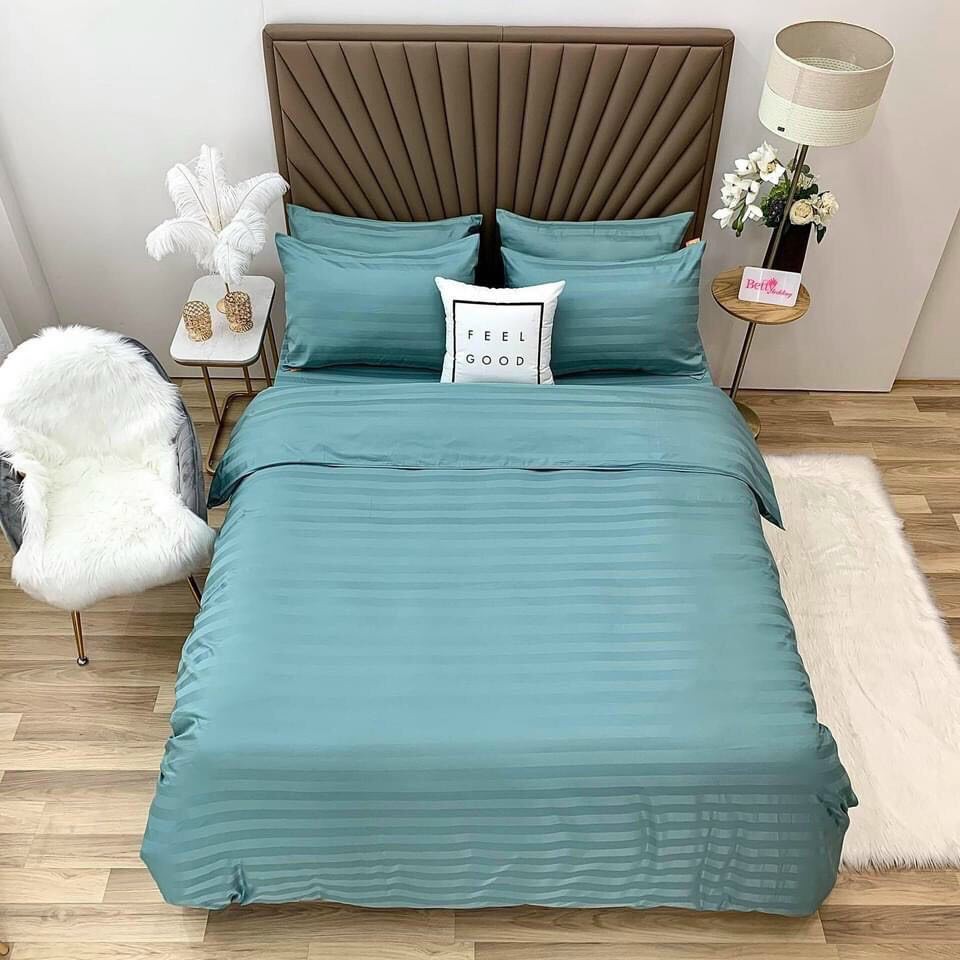 [NHẬP KHẨU] set chăn ga và vỏ gối cotton 3F sọc(có chăn) - freesize - bo chun miễn phí