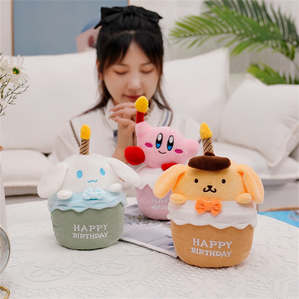 Giới thiệu Đồ Chơi Nhồi Bông Hình Bánh Kem Sinh Nhật Kirby / Kulomi / Melody / Pudding Dog / Cinnamoroll Có Nhạc Và Đèn Phát Sáng Dành Cho Trẻ Em