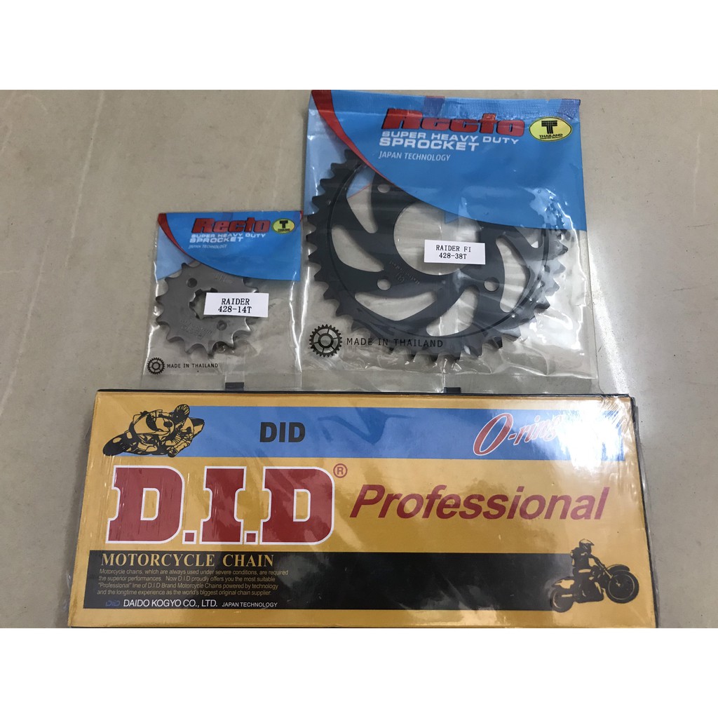 Ô Tô & Xe Máy & Xe Đạp > Phụ tùng xe máy > Hệ thống truyền động, Hộp số & Ly hợp > Bộ nhông, sên, dĩa RaiderFI và Satria (nhông14, dĩa recto38- sên DID có phốt)