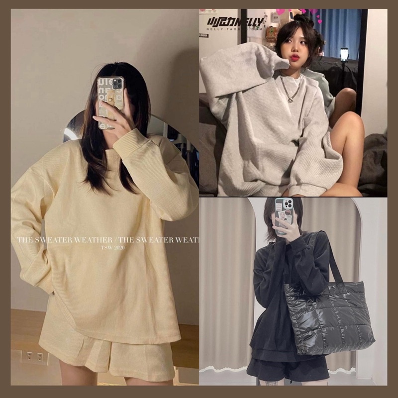 Giới thiệu Bộ nỉ thể thao Basic xốp trơn [FREESHIP] Set đồ áo nỉ dài tay Sweater cổ tròn quần Short đùi Basic 3 màu