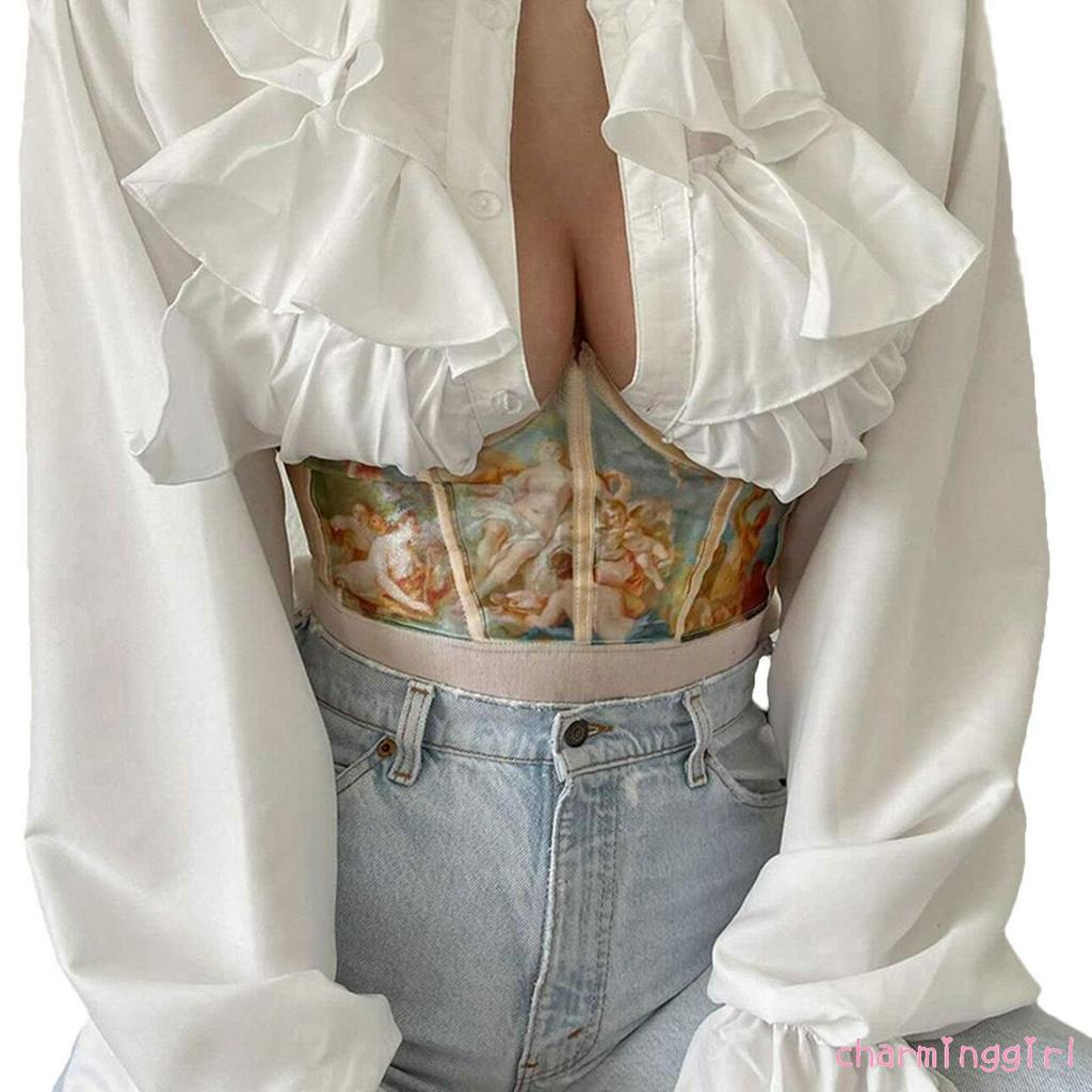 THIẾT KẾ: Đai áo nịt ngực in tranh sơn dầu với phần rỗng ở phía trên để nâng đỡ vòng một của bạn, hoàn hảo cho trang phục hàng ngày.