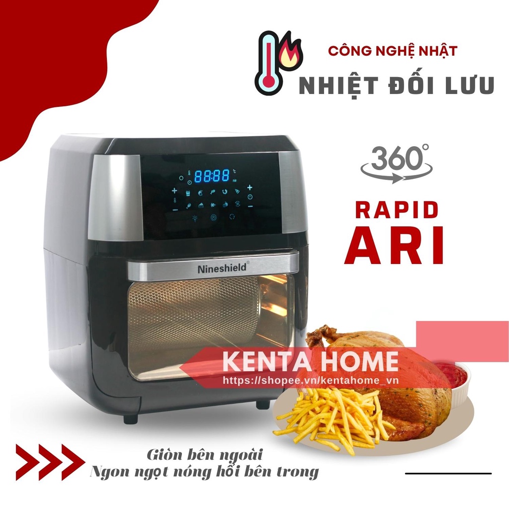 Giới thiệu Nồi Chiên Không Dầu NINESHIELD 12L Điện Tử KB - 1201 Thương Hiệu Nhật, Công Suất 1800W, 6 Món Phụ Kiện, Hàng Chính Hãng