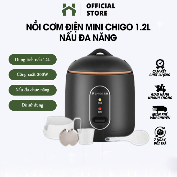 Giới thiệu Nồi Cơm Điện Mini Chống Dính Chigo 1.2L, Nồi Nấu Đa Năng Hầm Súp Cháo Không Sợ Tróc An Toàn Cho Sức Khỏe BH 12 Tháng