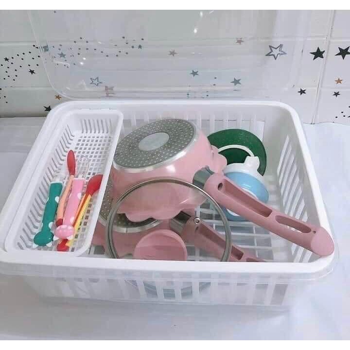 Rổ/ Giá Úp Chén Bát Ăn Dặm, Có Nắp Đậy Vệ Sinh - Thương Hiệu Inomata