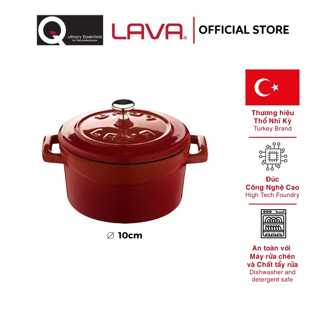 1. Tính Năng Công Dụng: - Nồi Lava giữ nhiệt hiệu quả, cho phép bạn áp dụng các phương pháp nấu ăn. Tương thích với hầu hết lò nướng và vỉ nướng ngoài trời – chịu được nhiệt độ lên đến 500 ° F/ 260 độ C. -Nồi Gang Lava rất dễ làm sạch, có thể được rửa bằng máy rửa chén hoặc bằng tay - gang có thể tái chế 100% và tiết kiệm năng lượng do có khả năng giữ nhiệt tốt. -Công nghệ gang tráng men cao cấp, màu sắc sang trọng. -Nắp nồi thiết kế chấm tròn đối lưu hơi nước, giữ được độ ẩm tuyệt vời cho món ăn. 2. Thông số kĩ thuật: + Chất liệu: Gang tráng men + Đường kính: 10 cm + Dung tích: 0.35L + Màu sắc: Đen / Xanh lá / Cam / Đỏ + Xuất xứ: Thổ Nhỹ Kỳ