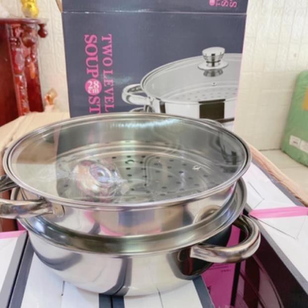Nồi hấp inox 2 tầng POT size 28cm LOẠI DÀY