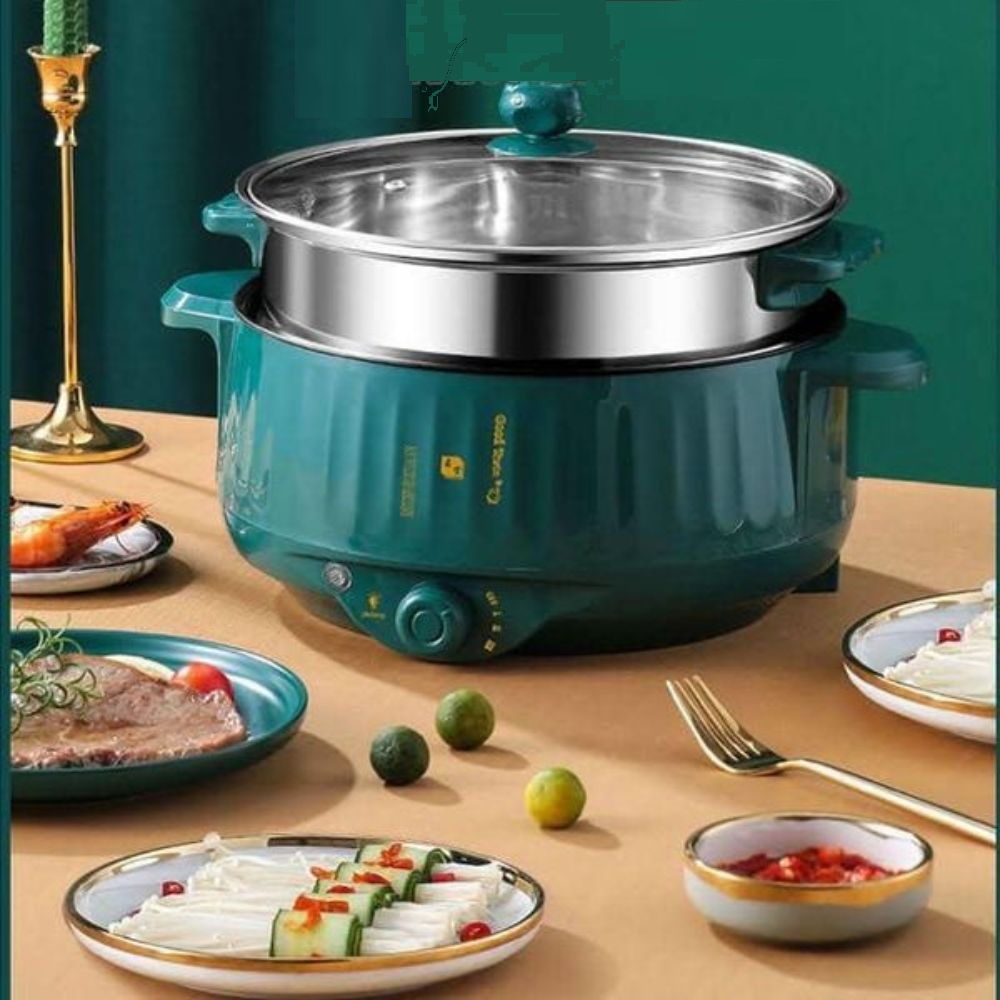 Nồi lẩu điện chống dính, có tầng Hấp vỉ InoxNồi lẩu điện chống dính, có tầng Hấp vỉ InoxNồi lẩu điện chống dính, có tầng Hấp vỉ Inox Giá EXA