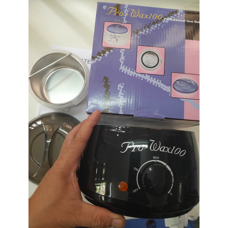 Nồi nấu sáp triệt lông Pro wax 100 có 2 màu đen trắng Nồi nấu sáp wax lông là dụng cụ không thể thiếu cho các cơ sở làm đẹp hay chị em phụ nữ muốn tự chăm sóc bản thân. Thiết kế nồi nấu sáp wax lông nhỏ gọn, nhẹ nhưng lại cực kì dễ thương. Đồng thời có 2 màu cho chị em lựa chọn mỗi màu lại mang những nét cá tính riêng. Màu đen sang trọng, màu trắng tinh tế. Máy có thao tác sử dụng đơn giản, tiện lợi, nhưng lại mang lại nhiều hiệu quả cao trong việc wax lông. Thông tin sản phẩm - Model : PRO WAX 100 - Đường kính nồi 18cm - Cao 15 cm. - Dung tích: 500cc - Điện áp sử dụng: 110 - 220v - Trọng lượng: 0.66kg - Chất liệu vỏ: Nhựa ABS Ứng dụng: Sử dụng để nấu chảy sáp wax lông 1 cách dễ dàng và tiện lợi. Thích hợp để sử dụng trong các spa hoặc cá nhân. Cách sử dụng: - Bước 1: Bỏ 1 lượng hạt wax lông vào trong nồi nấu sáp đun để sáp tan ra - Bước 2: sau khi sáp tan ra hoàn toàn, để nguội tự nhiên đến khi sờ vào chỉ còn hơi ấm (khoảng 40 độ C là được) - Bước 3: lau nhẹ vùng bạn cần wax, lưu ý nên lau nhẹ nhàng tránh ma sát mạnh khiến da bị tổn thương. - Bước 4: dùng que gỗ chuyên dụng cho wax lông là tốt nhất phết 1 lượng sáp trải đều mỏng theo chiều lông mọc lên vùng da. - Bước 5: sờ lên vùng sáp đã khô, giật ngược lại chiều lông mọc. - Bước 6: thoa lớp dầu dưỡng (nếu có) Lưu ý: - Không được sử dụng lăn khử mùi, xịt khử mùi trong vòng 3 tiếng kể từ sau khi wax - Không được đi bơi ở các hồ bơi công cộng, tắm biển trong vòng 24 tiếng kể từ sau khi wax. Bởi vì nước biển mặn sẽ khiến da bạn dễ bị thâm đen, và nước ở hồ bơi công cộng có chứa Clorua dễ khiến da bị xót gây ra tổn thương.