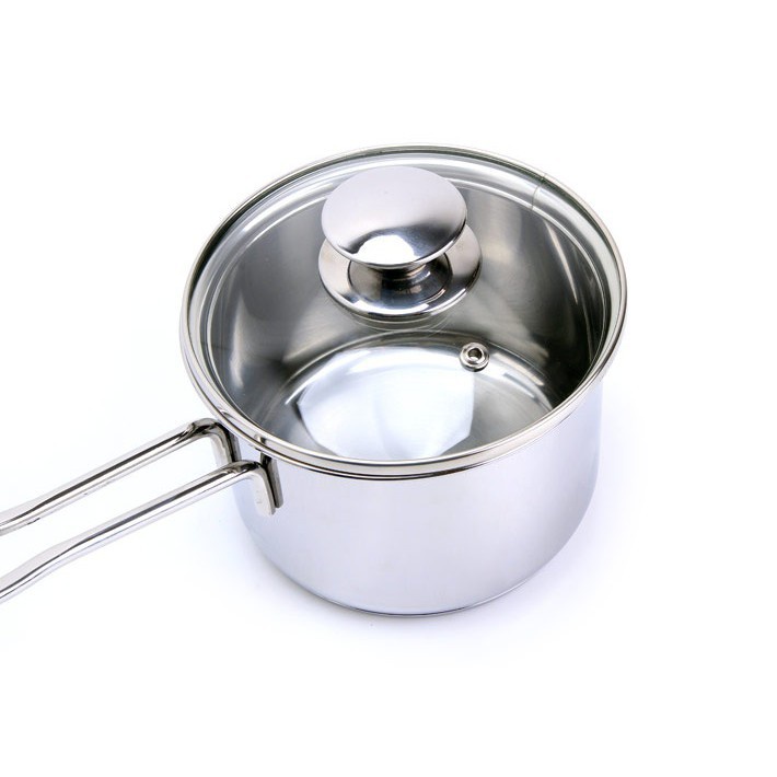 Nồi quánh nấu bột inox 3 đáy Fivestar được sản xuất tại Việt Nam theo tiêu chuẩn Hàn Quốc rất thuận tiện cho việc nấu cháo, quấy bột hay sử dụng để chế biến các món ăn dặm cho bé. Kích thước nồi nhỏ gọn giúp mẹ dễ dàng nấu lượng nhỏ đồ ăn dành riêng cho bé. - Đáy nồi có cấu tạo 3 lớp: 2 lớp ngoài là inox, lớp giữa là hợp kim nhôm giúp thu nhiệt nhanh, tỏa nhiệt tránh tình trạng dễ cháy/bén thực phẩm trong quá trình chế biến đồ ăn dặm cho bé. - Quai cầm được gắn chặt vào thân nồi giúp mẹ dễ dàng nâng đặt hay di chuyển nồi sang vị trí khác. - Nắp thủy tinh cường lực chịu được va đập có viền bo kim loại để giữ kín hỏi, lỗ nhỏ trên vung chống tràn thực phẩm. - Nồi quánh nấu cháo Inox 3 đáy Fivestar được làm từ chất liệu Inox 430 dập nguyên khối không gỉ, không oxy hóa, không chứa các chất độc hại, không tương tác hóa học thực phẩm đảm bảo vệ sinh an toàn cho sức khỏe của bé.