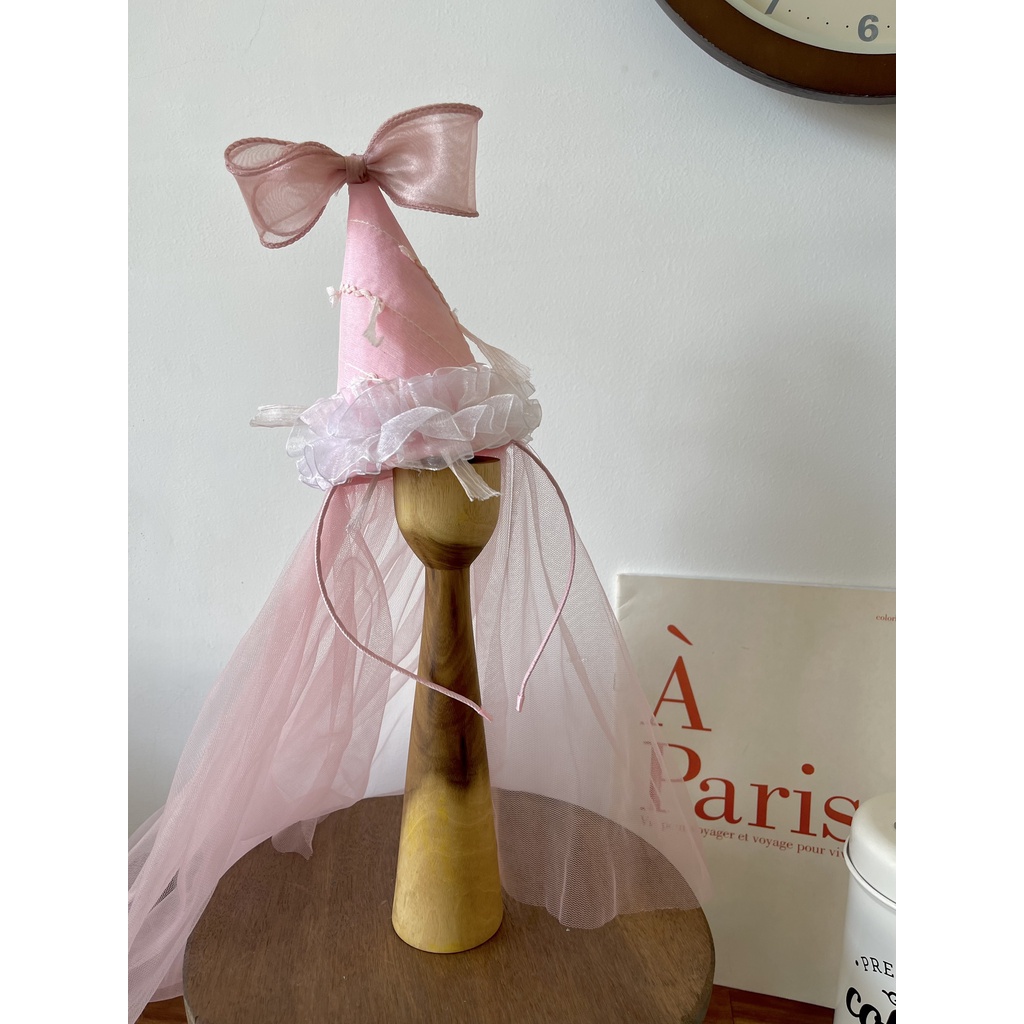 Giới thiệu Nón chóp nơ có voan em bé - phụ kiện sinh nhật cho bé - màu hồng