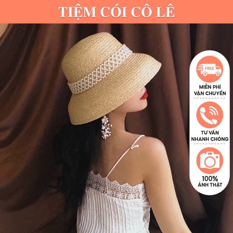 Giới thiệu Nón cói chuông cao cấp phối đai đính hạt trai sang chảnh đi biển, chụp hình - Tiệm Cói Cô Lê