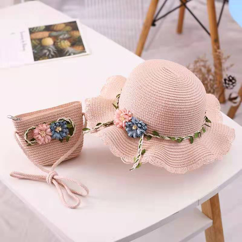 Giới thiệu Bộ nón cói và túi đeo chéo hoa cho bé gái