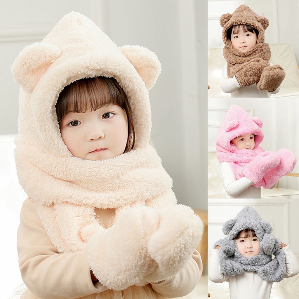 Tên sản phẩm: nón trùm đầu kiêm khăn choàng Chất liệu: flannel Phong cách: dễ thương Dành cho: bé trai, bé gái Mùa phù hợp: mùa thu, mùa đông Thích hợp cho tuổi: 1-7 tuổi Đặc trưng: trang trí tai gấu hoạt hình, vải lông, bảo vệ tai Chi tiết kích thước: Tổng chiều dài: 130cm / 51,22 "(Xấp xỉ)