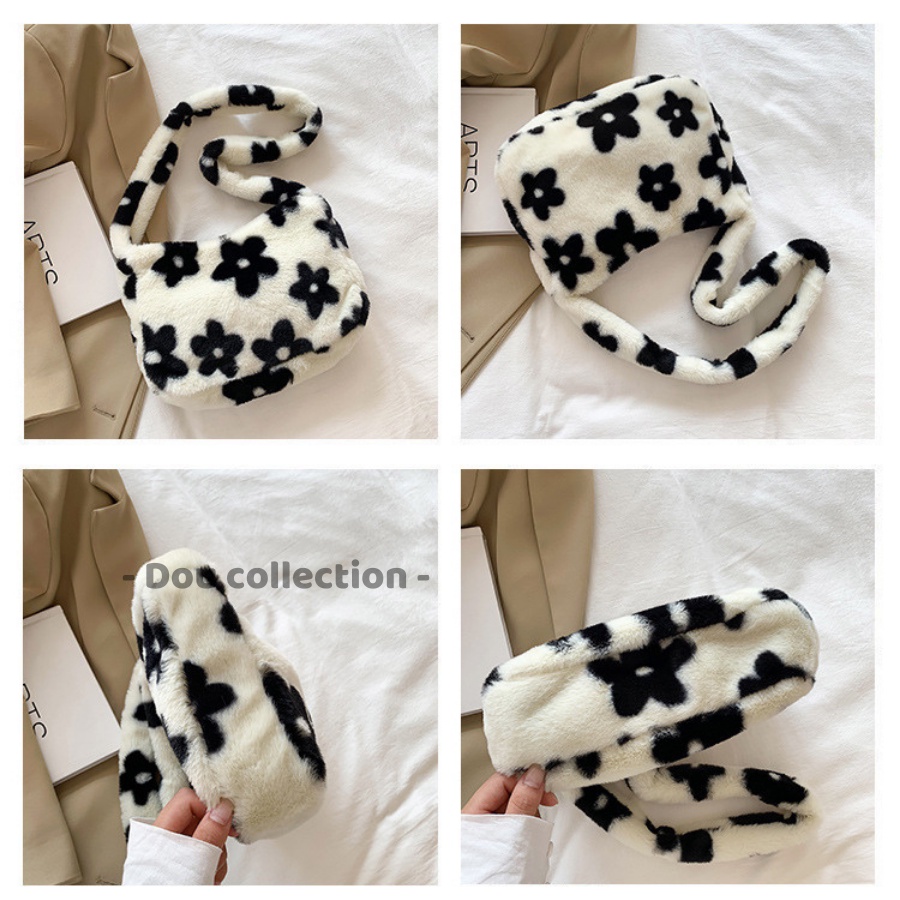 Giới thiệu [NowShip2h] Túi Xách Lông Kẹp Nách (Túi Toe) Đeo Vai Họa Tiết Hoa 5 Cánh Thời Trang Thu Đông - Mã XT058
