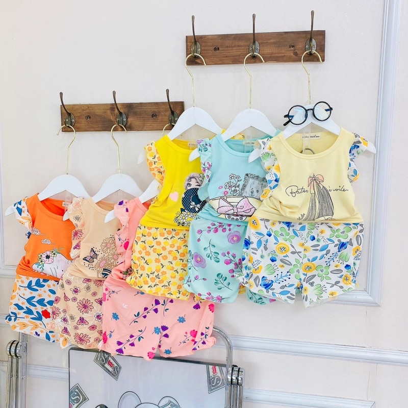 Giới thiệu NT080 Bộ cộc thun lạnh Minky Mom tay cánh tiên quần bèo cho bé gái hoạ tiết hoa nhí
